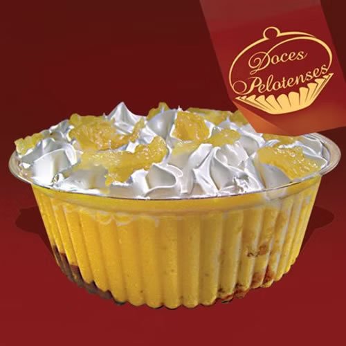 Pão-de-ló, creme de baunilha, abacaxi, merengue. Contém Lactose Contém Glúten. Porção individual 120g.